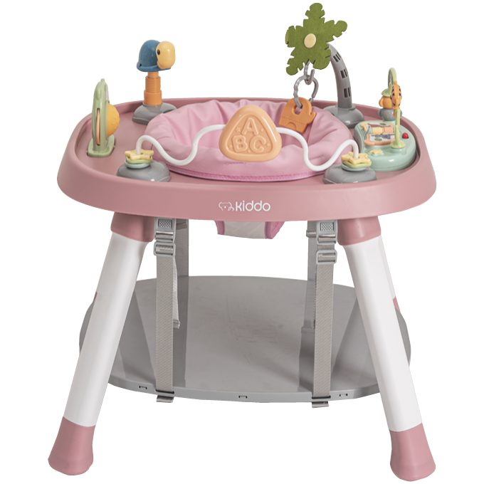 - centro de atividades com assento giratório, plataforma para apoio dos pés e 5 diferentes brinquedos para interação e desenvolvimento da criança, sendo 1 deles um brinquedo musical.